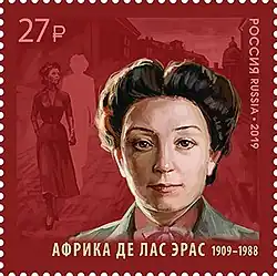 África de las Heras Gavilán (26 April 1909 – 8 March 1988) was a Spanish-born communist and naturalized Soviet citizen who was born in Ceuta and died in Moscow. She was a secret service agent who went by the code name "Patria", but also used the names "María Luisa de las Heras de Darbat","María de la Sierra","Patricia", "Ivonne", "María de las Heras", "Znoi" and "María Pavlovna". Originally a member of the Communist Party of Spain, de las Heras participated in various Soviet intelligence operations both during and after the Spanish Civil War. Though she had been exhibited by Pavel Sudoplatov as the secretary of Trotsky in Norway and in Mexico, the number of assassination teams to kill Trotsky that were assisted by de las Heras, was never known. Later she stopped her own direct actions and their support and trained other KGB agents in Moscow.[1][2]