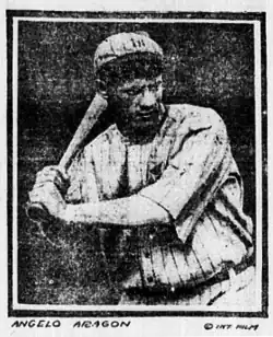 Ángel Aragón (August 2, 1890 — January 24, 1952) was a Cuban professional baseball player and father of Jack Aragon. Aragón spent his entire Major League Baseball career with the New York Yankees.[1] He played in the Cuban League from 1912 to 1920.[2] He was also the first Cuban and Latin American player to play for the Yankees.[3]