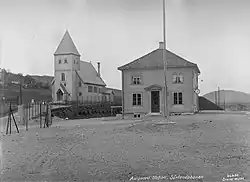 After Foss-Eikeland, the line crosses Figgjo River on a 30-meter-long (98 ft) truss bridge. It passes Bråstein Station and continues up the steepest gradient at 1.5 percent to Figgjo Station.[2] It had a 69-meter (226 ft) passing loop and a 50-meter-long (160 ft) platform, and a 97-square-meter (1,040 sq ft) single-story station building in wood.[5] Ålgård Station was the largest on the line, with two tracks and a 120-meter-long (390 ft) platform, a 12.3-meter-long (40 ft) turntable and a 66-square-meter (710 sq ft) depot. The station was built in wood in two stories, and included living quarters for the station master.[6]