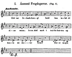 Åsmund Frægdegjevar is a medieval Norwegian legend and ballad (classification: TSB E 145)[1] with several variations all detailing the adventures of a hero by the same name who is hired by the king to rescue a princess. It is based on a fornaldarsaga.