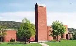 Åssiden Church (Åssiden Kirke) dates from 1967. It is designed by the architects Harald Hille and Odd Østbye. The building was built of brick and has 350 seats. It is part of the Drammen prosti in the Tunsberg diocese.[4]