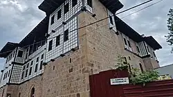 The building, which consists mainly of pink sandstone, was built on a hill with sea views. The mansion has an area of 529 m² and has a living area of approximately 1500 m².[4] The northern side of the building faces the sea. There are two floors with small windows. To the South, the building consists of three floors. The second and third floors are decorated with woodwork. The main gates are facing west and east. On the south side there is a third door in the middle. In addition, a gate for the horses is installed on the east side.