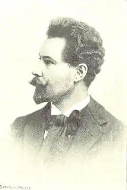 In 1881, he was part of the Belles-Lettres Literary Society, a student group dedicated to acting, writing, and performing music, theatre, and opera.[7] At that time, Dalcroze felt more interested in composing. In 1884, he studied composition with Léo Delibes and Gabriel Fauré. Around the same year, he studied acting with leading players of the Comédie-Française.[8] Further on, he studied composition with Mathis Lussy, which influenced him in the process of rhythmic development. By the year 1886, he was the assistant conductor in Argelia, where he discovered Arab folk music. In contact with this kind of music, Dalcroze noticed that there were different worlds of rhythmic expression, each of which would require a particular way of writing, as well as a unique performance style. Accordingly, he developed a new kind of music notation. In 1887, he went to the Conservatory of Vienna, where he studied with Anton Bruckner.