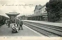 Although the stop appears to have been created in 1850,[4] the station was constructed only in 1880, as the Gare d'Épinay, by the Chemins de fer du Nord with appropriate architecture for a junction station, as at Eu. It was renamed Gare d'Épinay-Villetaneuse in 1908 when the new Gare d'Épinay-sur-Seine was built on what was then called the Les Grésillons line (now incorporated into the North Branch of the RER C).