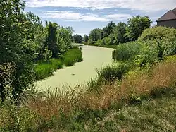 Île aux Lièvres is bounded by the east bank of the Acadia River; the northeast channel separating it from Goyer Island; the east channel separating it from Hay Island and Demers Island (which are located on the west shore of the Bassin-de-Chambly); and a small channel separating it with a point of land from the town of Chambly where a golf course is laid out. This island is the second largest of the four islands separating the Bassin-de-Chambly and the Acadia River. The other islands are Goyer Island, Demers Island and Île au Foin.[1] A pedestrian bridge connects Goyer Island and Île aux Lièvres.[2]