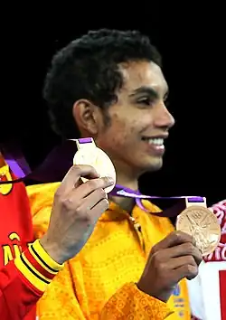 Óscar Luis Muñoz Oviedo (born 9 May 1993) is a Colombian taekwondo practitioner who won a bronze medal at the 2012 Summer Olympics in the -58 kg weight class.[2] This was the fifth Olympic medal for Colombia at the 2012 Summer Olympics, and the first medal in this sport. At the 2016 Olympics he was eliminated in the first bout.