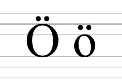 Ö, or ö, is a character that represents either a letter from several extended Latin alphabets, or the letter "o" modified with an umlaut or diaeresis. Ö, or ö, is a variant of the letter O. In many languages, the letter "ö", or the "o" modified with an umlaut, is used to denote the close- or open-mid front rounded vowels [ø] ⓘ or [œ] ⓘ; compare the vowel in "girl", which in these languages phonetically could be written: /görl/. In languages without such vowels, the character is known as an "o with diaeresis" and denotes a syllable break, wherein its pronunciation remains an unmodified [o].