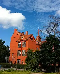 Örbyskolan was built in 1915 and designed by architect Georg A. Nilsson (1871-1949). The building looks like similar schools in Gamla Enskede and Långbro and is sometimes mistaken for a church due to its size and shape.[3] [4]