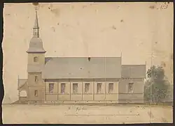 By the 1860s, the old church was in poor condition and it was decided to build a new church and tear down the old church. In 1862, the parish hired the architects Heinrich Ernst Schirmer and Wilhelm von Hanno to design the new church and Jacob Ørstenvig was hired as the lead builder. In 1864, the old church was torn down and work began on a new church about 50 metres (160 ft) to the east of the old church site. Some of the building materials as well as some of the interior furnishings of the old church were reused in the new church. Some of the interior design elements were inspired by the historic Urnes Stave Church. The new building was consecrated on 4 December 1864. In 1953, the church porch was torn down and rebuilt. The porch originally had a stave church-inspired design with a triangular gable in the middle, but when it was rebuilt it was given a wide gable shape, much like a temple front. In 1967–1970, the ground underneath the church was excavated to create a basement space where a new church hall and other utility rooms were constructed.[3][4][5]