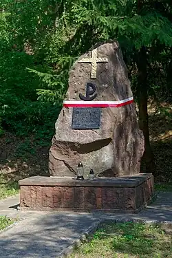 When the Germans occupied Ćmielów in September 1939, they began immediately to rob and starve the Jewish community. In June 1942, the Nazi Germans set up a Jewish ghetto in Ćmielów for about 1,500–2,000 Polish Jews, including all of Ćmielów's 500 Jews. Conditions worsened through hunger, overcrowding, and a typhus epidemic. In late October, 1942, some younger Jews were sent to labor camps, other Jews were murdered in the town, and some 900 Jews were sent to Treblinka extermination camp where they were immediately murdered by gassing.[3][4] Few of the Jewish community survived; after the war 16 Jews registered in the town but none stayed.[5]