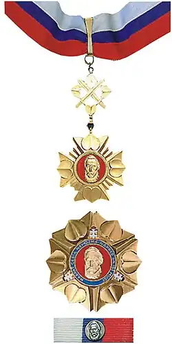The Order of Ľudovít Štúr (Slovak: Rad Ľudovíta Štúra) is the third highest Slovak state decoration (after the Order of the White Double Cross and the Order of Andrej Hlinka) conferred by the President of the Slovak Republic upon the proposal of the government. The president, who is a recipient, 1st Class, of the order by virtue of holding office, is not obligated to respect the proposal.[1][2][3]
