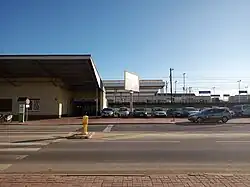 Łódź Kaliska is one of the two main railway stations in the central Polish city of Łódź. It is located west of the center of the city, in the district of Polesie, and it consists of six platforms. The first complex of the station, designed by Polish architect Czesław Domaniewski, was built in 1902 in the style of Art Nouveau. Inside, there were several Art Nouveau elements, including crystal windows in doors, as well as brass fittings. The station served the Warsaw–Kalisz Railway, built between 1900 and 1902.