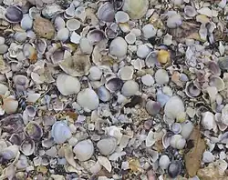 Cockle shells on Omana beach.