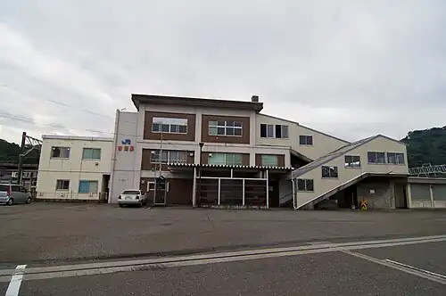 Ōmi Station (青海駅, Ōmi-eki) is a railway station in the city of Itoigawa, Niigata, Japan, operated by Echigo Tokimeki Railway.