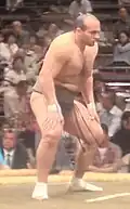 Ōsunaarashi Kintarō (大砂嵐 金崇郎) (born February 10, 1992, as Abdelrahman Shalan, Arabic: عبد الرحمن شعلان) is a retired sumo wrestler from Egypt. He was the first pro sumo wrestler from the African continent. Ōsunaarashi, whose chosen ring name translates into English as "great sandstorm", rose quickly through the unsalaried ranks, gaining the interest of Japanese media and popularity among sumo fans. Ōsunaarashi was promoted to the top tier makuuchi division for the November 2013 tournament. He emerged victorious from his first two matches against yokozuna ranked wrestlers in July 2014.[1] He dropped in rank after injury problems and was forced to retire in March 2018 after being involved in a traffic accident when he was driving without a valid license. After leaving sumo he signed with Rizin FF, a Japanese national mixed martial arts organization where he joined other former rikishi like Baruto Kaito and Akebono Tarō. His mixed martial arts debut was at Rizin 13.