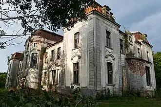 Śviatapołk-Čaćviarcinski Manor (Belarusian: Палацава-паркавы комплекс Святаполк-Чацвярцінскіх was a palace built by Liudwig Sviatopolk-Chetvertynsky near Zhaludok, Belarus. Complex includes a brick palace, an outbuilding, the remains of a former mill, a smithy and other outbuildings, which are connected by a network of mutually perpendicular alleys of the regular park. Now the palace is abandoned.[3]