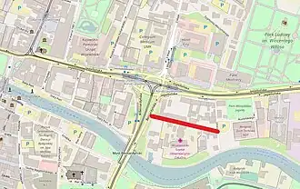 The street is located nearby the Brda river, its track running parallel to the water, on a west–east axis. It stems out of Bernardyńska Street in the west and runs between the river and Jagiellońska street.