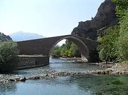 The bridge was constructed in the late Roman Empire era. It was also used during the Byzantine Empire, the Seljuks of Anatolia, the Karamanids and the Ottoman Empire. In the 14th and 15th centuries, it was the customs post of the Karamanids, who controlled the north of the bridge. It was restored many times, the last one being in 2000-2001.[1]