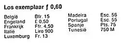 The non italic f with hook used for the florin sign on the price chart for the Algemeen Dagblad in 1980.