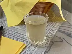 Țuică (Romanian pronunciation: [ˈt͡sujkə]) is a traditional Romanian spirit that contains ~ 24–86%[1] alcohol by volume (usually 40–55%), prepared only from plums.[1] Other spirits that are produced from other fruit or from a cereal grain are called "rachiu" or "rachie". Țuică is also the foundational element for creating the traditional Romanian vinars from different spirited fruits. In 2013, Romania produced 1.3 million hectolitres (34 million US gallons) of țuică.[2]