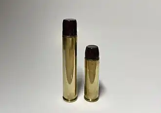 ![]() Comparison of the .500 Bushwhacker (L) to the .500 S&W cartridge (R) | ||||||||||||||||||||