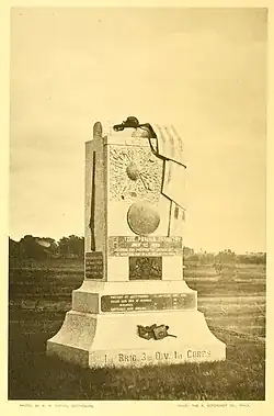 On the morning of July 1, the regiment marched at the head of the brigade, which also included the 142nd and 151st Pennsylvania regiments, and the 20th New York Volunteer Infantry Regiment, as well as a battery of artillery, all under command of Colonel Biddle, Lieutenant Colonel Alexander Biddle being in command of the regiment.