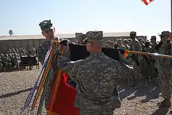 After its activation, the brigade began moving its components from Schweinfurt to Grafenwöhr, Germany, as part of the Grow the Army plan.[40] Simultaneously, the brigade converted to a modular structure to become a Brigade Combat Team upon completion.[41] In May 2008, the brigade was alerted that it would be returning to Iraq in the fall of that year.[42][43] The deployment was set to last 12 months,[42] and was set to start after the unit's 12-month out-of-action cycle ended in November 2008.[44][45] This would be the brigade's third tour to Iraq,[46] as it completed a tour of duty in Iraq shortly before being redesignated from the 2nd Brigade, 1st Infantry Division. The brigade began training for its deployment to the country as soon as it received orders for deployment. German military officers trained with the brigade during this preparation.[47] The soldiers of the brigade were part of a 40,000-soldier troop rotation into Iraq and Afghanistan, intended to maintain previous troop levels in both countries until late 2009.[48] In fall of 2008, the brigade completed its transition to a brigade combat team, and was redesignated as the 172nd Infantry Brigade Combat Team.[49]