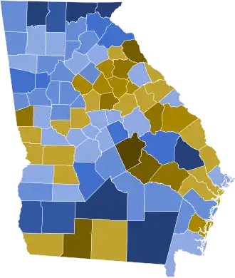 ![]() Results by County[1] Schley: 50–60% 60–70% 70–80% 80–90% >90% Dougherty: 50–60% 60–70% 70–80% 80–90% >90% | ||||||||||||||||||||