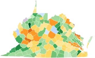 - ^ Results by county in Virginia