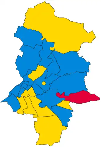 | Party | Votes | Seats | Full Council | |||||||