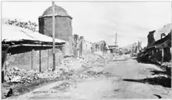 The greatest damage occurred at Kingston and at Buff Bay and Annotto Bay on the northern coast. Eighty-five percent of buildings in Kingston were destroyed by the shaking, which was followed by a fire that destroyed parts of the business and warehouse districts.[4] The Elder-Dempster passenger steamer Port Kingston, which was under repair in Kingston Harbour at the time, was threatened by fire on the nearby wharf. A rapid temporary repair allowed her to be moved to the safety of an unaffected railway wharf.[5] A suspension bridge was destroyed at Port Maria.[1]