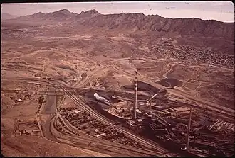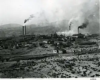 In the early 1900s, the American Smelting and Refining Company, which was owned by the Guggenheim family of New York City,[6] operated a copper smelting plant in El Paso, Texas.[7] The smelter was one of the largest industries in the city and employed about 3,000 people, primarily Mexican Americans,[8][9] who lived in the nearby Smeltertown neighborhood.[10]
