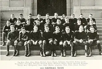 The 1915 Purdue Boilermakers football team was an American football team that represented Purdue University during the 1915 college football season. In their third season under head coach “fighting” Andy Smith, the Boilermakers compiled a 3–3–1 record, finished in a tie for fifth place in the Western Conference with a 2–2 record against conference opponents, allowing the same number of points, 62. “Indestructible” Frank B. Blocker was the team captain.[1][2]
