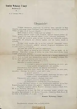 - ^ Przed wyborami do rady miejskiej in Kurjer Warszawski, June 6, 1916. p. 1