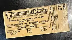 - ^ "30,000 expected to see Harvard-Oregon battle at Pasadena". Chicago Sunday Tribune. December 28, 1919. p. 3, sec. 2.