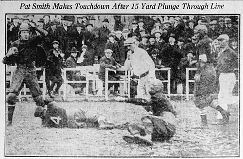 - ^ "Bulldogs Tie Score by Final Period Rally: Smith Scores Touchdown in Opening Play and Griggs' Forward Passing Prevents Defeat," Buffalo Times, Nov. 21, 1921, p. 14.