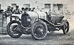 Chenard-Walcker was a major Parisian automotive company, established in 1899 and one of the city's biggest suppliers of taxis. They had a close relationship with coachbuilding company FAR who built their bodywork, led by André Lagache and Raymond Glaszmann (both keen racers). Lucien Chenard, son of the founder, had set up a works racing team in 1921 with the company test-driver René Léonard. Active in post-war racing they sent a trio of cars with the latest Torpédo bodystyle from FAR. Two had the new U3 3-litre engine that put out 90 bhp, driven by Léonard with Lagache, and Glaszmann with Fernand Bachmann. The third car, with a less powerful U2 engine was run by Bachmann's brother Raoul with veteran Christian Dauvergne.[2] They were supported by a well-drilled pit crew to assist the drivers.[15][8]