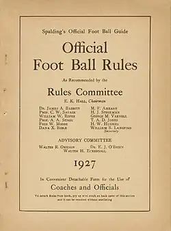 13. ^ Hall, et. all, "Official Football Rules...1927," p. 7.