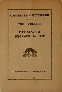 - ^ a b "Footballers Smother Thiel In Opening Contest". The Pitt Weekly. Vol. 19, no. 1. September 28, 1927. p. 6. Retrieved June 25, 2021.