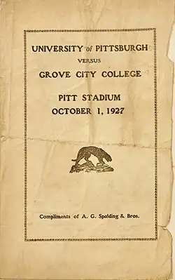 - ^ "Pitt Panthers Squad". University of Pittsburgh Football Official Souvenir Program. University of Pittsburgh Athletic Department. October 8, 1927. p. 17.