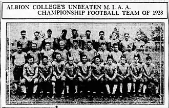 - ^ "Albion, Defeating Alma, Clinches M.I.A.A. Football Championship". The Battle Creek Enquirer and News. November 17, 1928. p. 7 – via Newspapers.com.