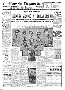 49. ^ "¡España venció a Inglaterra!" [Spain beat England!]. Mundo Deportivo (in Spanish). Barcelona: Grupo Godó. 16 May 1929. p. 1. Retrieved 8 July 2021.