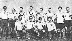 Spain had played their first international match in 1920, less than nine years prior to the fixture with England, taking part in the 1920 Olympics where they faced Denmark in the opening match; a goal from Patricio Arabolaza secured a 1–0 victory, though it was goalkeeper Ricardo Zamora who was Spain's key player in the match, particularly late on when injuries meant they had to finish the match with 10 players.[19][20] Spain were managed by José María Mateos, a former journalist and manager of Athletic Bilbao who had been part a management trio taking charge of Spain since 1922,[21] and had taken sole charge of the team following a 7–1 defeat to Italy at the 1928 Olympics,[22] In contrast to England's stubborn approach towards foreign football, the Spanish held the English in high esteem and their football heritage was treated with great reverence; several Spanish football clubs used English terminology in their names,[23] and many coaches of the teams were from England;[10][24] Athletic referred to England as "la madre del fútbol" (the mother of football).[25] Such was the profile of the fixture within Spain, it was the first football match to be publicly broadcast via radio,[2][21][22] and it was said by Mundo Deportivo to be a "giant, transcendental step" for Spain to playing against England, and that a victory would see their "prestige consolidated throughout the world".[26]