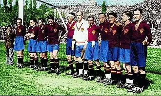 Pentland would return to manage Athletic Bilbao soon after, and would win consecutive La Liga championships in 1929–30 and 1930–31.[39] The clubs' unique Basque-only signing policy, which had only previously been hinted at by the clubs hierarchy, was solidified thanks to the success Pentland achieved with the club.[58] Quincoces, the standout defender at the 1934 World Cup,[59][60] would later successfully revolutionise the defensive tactical approach from the then-popular 2–3–5 in which he excelled, into the 4–2–4 and later the 4–4–2 formations when manager at Real Madrid and Valencia in the 1940s.[61] The scorer of two of Spain's goals, Rubio, suddenly left the country in 1930 and went to Cuba,[2] effectively ending his international career.[62] 20 years after the match, he would say that the equaliser to make the game 3–3 was the goal that gave him most joy throughout his career.[63] Despite his brief spell representing his country, in which he scored nine goals in four matches, he is considered amongst the best players in Spain's history by AS, alongside Zamora and Quincones.[62]