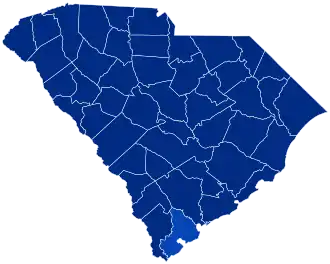 Roosevelt won South Carolina almost unanimously, taking 98.03% of the vote to Hoover's 1.89%. He swept every county in the state with more than 80% of the vote, and all but one (historically Black Republican leaning Beaufort County) with greater than 90%. With a victory margin of 96.14%, South Carolina proved to be Roosevelt's strongest state in this election.