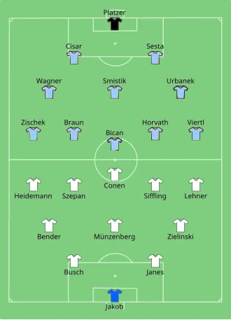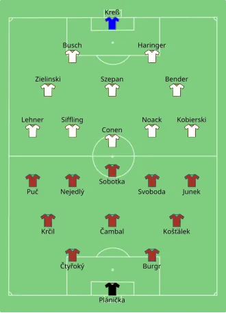 Both teams changed their usual line-ups, resting several players. Austrian players wore an unusual light blue jersey borrowed from Napoli because of the clash of colours between the two traditional jerseys. Germany took the lead inside 25 seconds with the fastest goal of the tournament, scored by Ernst Lehner. They doubled the lead with Edmund Conen, but Austria got one back immediately after with Johann Horvath. Germany's third goal came after Karl Sesta attempted to sit on the ball to ridicule a German player; the ball was stolen by Conen, who crossed to Lehner. Sesta then scored a goal, but Germany held on for the victory.[2]