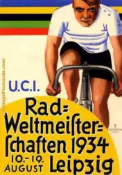 The 1934 UCI Track Cycling World Championships were the World Championship for track cycling. They took place in Leipzig, Germany from 10 to 19 August 1934.[1] Three events for men were contested, two for professionals and one for amateurs.
