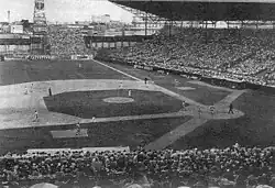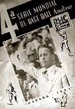 The Cuban national team, which had won the last two tournament, was anchored by a strong pitching staff that was the best of the amateur circuit.[4] Several of these players would go on to professional careers with Major League Baseball, including Rogelio Martínez (who went 2-0 in the tournament with a 0.00 ERA) and Julio Moreno (1-1, 1.29 ERA), who both played with the Washington Senators in the early 1950s.[5][6] The ace of the staff was Conrado Marrero, who went 3-0 during round-robin play with a very effective 0.46 ERA, though he would suffer the loss in the playoff game. Cuba's batters included Bernardo Cuervo, who hit .400 and led the tournament with 10 runs batted in; Andrés Fleitas (.378), the brother of Senators shortstop Ángel Fleitas; Napoleón Reyes, hitting .343; Clemente González (.395), whop had the most hits in the tournament with 17; and Tony Ordeñana (.256), who led the tournament with 14 runs scored, and would also go on to play a single major league game with the Pittsburgh Pirates in 1943.[7] The team was managed by Joaquín Viego, of the Hershey club.[4]