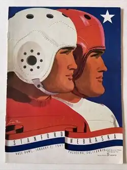 The 1941 Rose Bowl was the twenty-seventh edition of the college football bowl game, played on January 1, 1941 at the Rose Bowl in Pasadena, California. Unbeaten and second-ranked Stanford of the Pacific Coast Conference defeated No. 7 Nebraska of the MVIAA to claim a share of the national championship.[2][3]