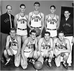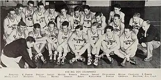 The 1942–43 Illinois Fighting Illini men’s basketball team represented the University of Illinois. The Illinois Fighting Illini finished the season with a record of 17 wins and 1 loss. The season was cut short as three of the five starters headed off to active duty in the armed forces. Illinois won the Big Ten Conference Title and had finished the regular season as the nations' top ranked team. Paced by a group of players known as the Whiz Kids, the team consisted of 20-year-old All-America forward Andy Phillip and teenagers Ken Menke, Gene Vance, Jack Smiley and team captain Art Mathisen. These players were so dominant in the Big Ten, that only Northwestern's Otto Graham could crack the all-conference team.[1]